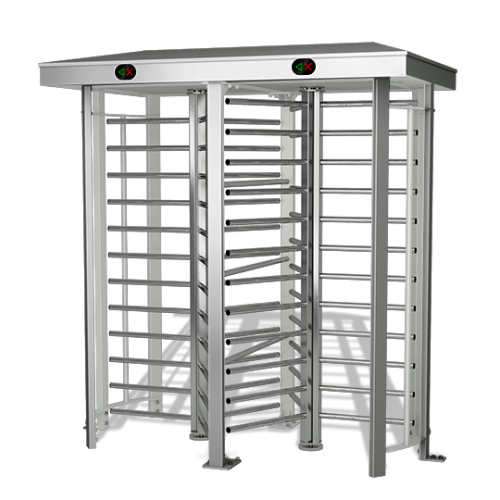 Сдвоенный, полноростовой, моторизированный турникет. Ширина прохода 2х585 мм. Пропускная способность 2х30 чел./мин. Трехлопастной ротор. Всепогодный. Турникет по устойчивости к воздействию климатических факторов внешней среды соответствует исполнению эксплуатации на открытом воздухе). Степень защиты IP‑54. Рабочая температура от -40°C до +50°C относительная влажность воздуха до 95%. Является нормально открытым преграждающим устройством и предназначен для управления проходом людей на пропускных пунктах объектов с повышенными требованиями к контролю пропуска и необходимостью полного перекрытия зоны прохода по высоте. При отключении источника питания ротор турникета разблокирован и разрешает проход в обоих направлениях. Напряжение питания турникета – 220B. Габаритные размеры: 2240×2062×1255 мм. Корпус и планки из нержавеющей стали. Подсветка прохода, совместимость с большинством СКУД по сухим контактам. Управление режимами работы турникета независимо для каждого прохода. Пульт управления в комплекте.